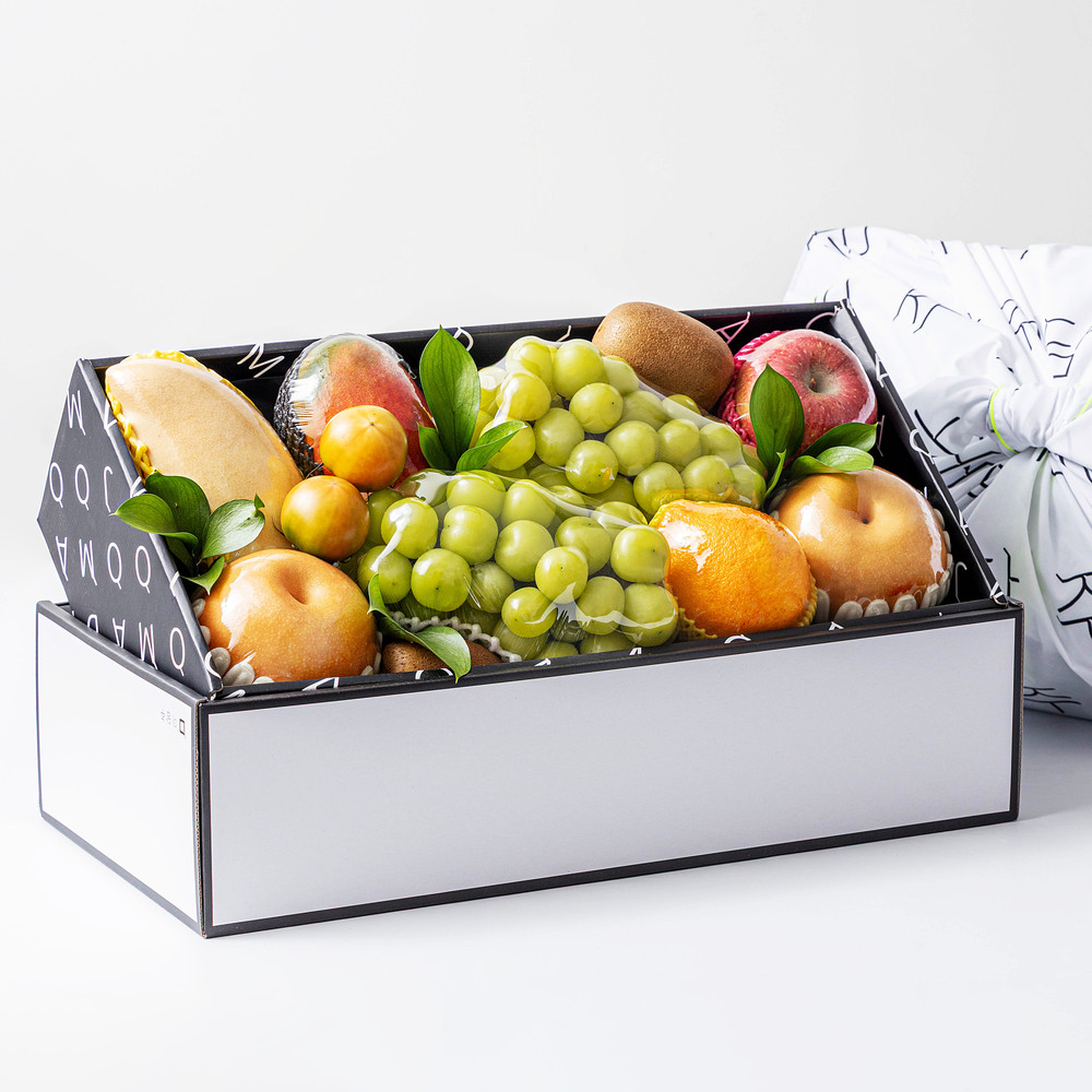 [기업전용:마음찬합 낮은 2단 선물세트] 사과 샤인머스캣 골드키위 귤