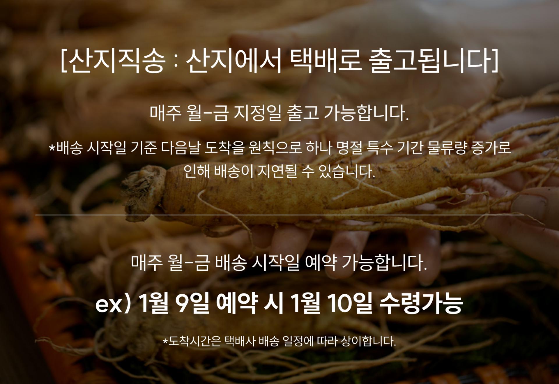 - 상품구성: 수삼, 나무채반, 이끼, 보자기