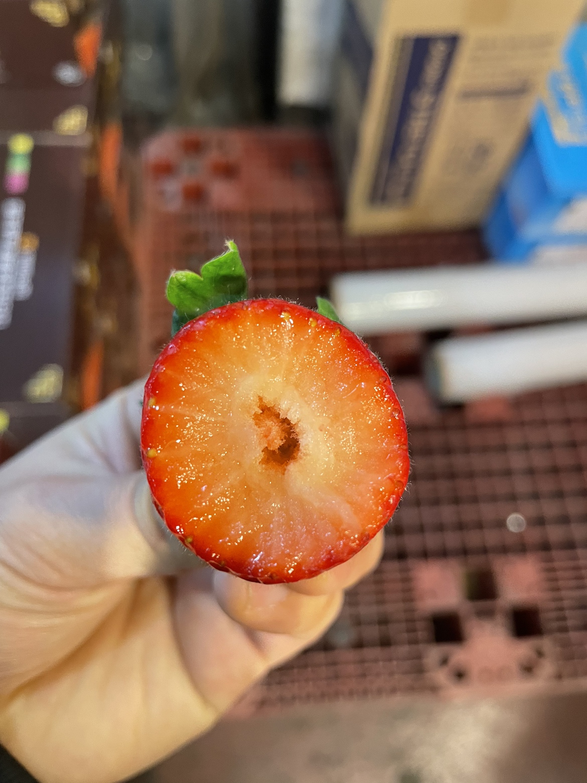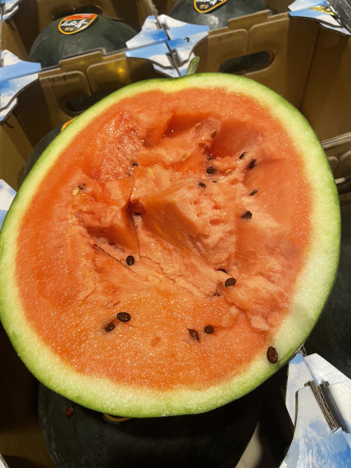 갈변이 되어 있는 상태입니다. 하지만 스킨포장을 벗기고 산소와 접촉하면 육색이